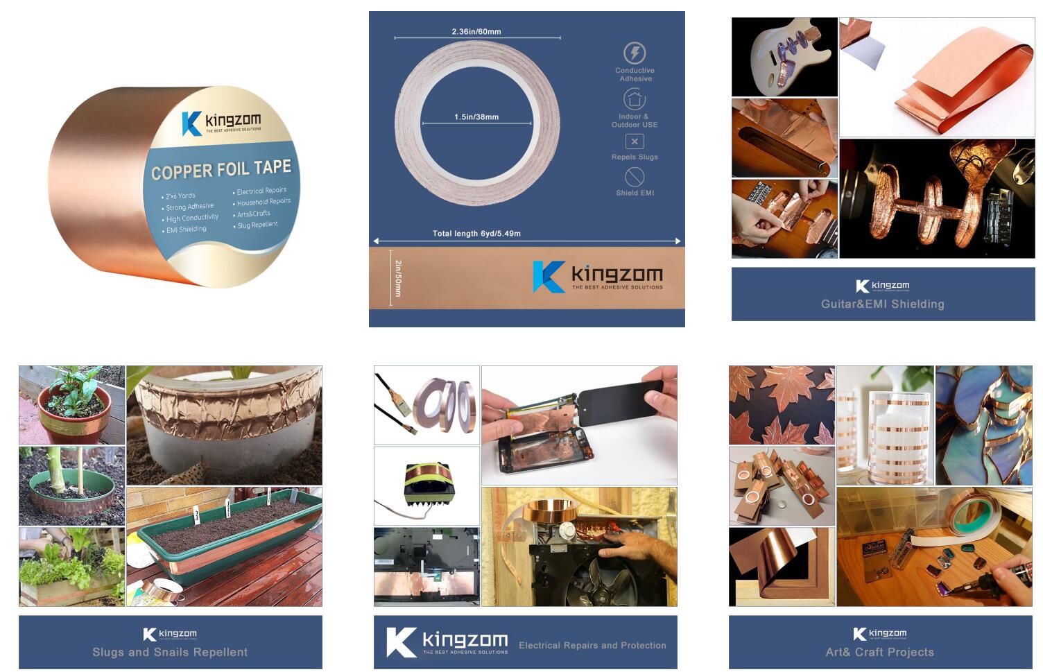 テープは、幅広い用途を持っており、以下の役割に適用されたときに完全に実行されます:EMIギターシールド、スラグ撥、カタツムリ忌避剤、はんだ付け、ステンドグラス、紙回路、教育援助、電気修理、家庭の修理、接着、アース、装飾、アート&クラフトと、より多くの。